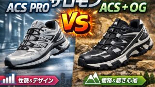 サロモン ACS PROとACS + OGの違いをわかりやすく比較します。価格やアウトソール、通気性、デザインの違いを整理しながら、どっちがおすすめかやさしく紹介。街歩きしやすいモデルや、テック感を楽しみたい人向けの選び方もまとめました。